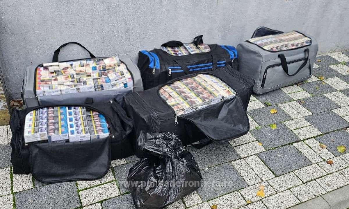 Cu ocazia verificării celor patru mijloace de transport, echipa comună de control a descoperit mai multe genți care conțineau pachete cu țigări, de diferite mărci.