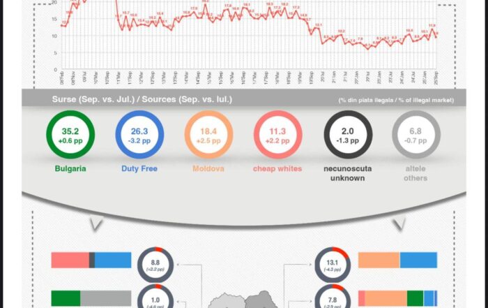 Piaţa neagră a ţigaretelor a scăzut, în luna septembrie, până la 9,6% din totalul consumului, de la 11,9% - nivelul din iulie, care urcase consumul ilegal la un record al ultimilor cinci ani, conform studiului [...]